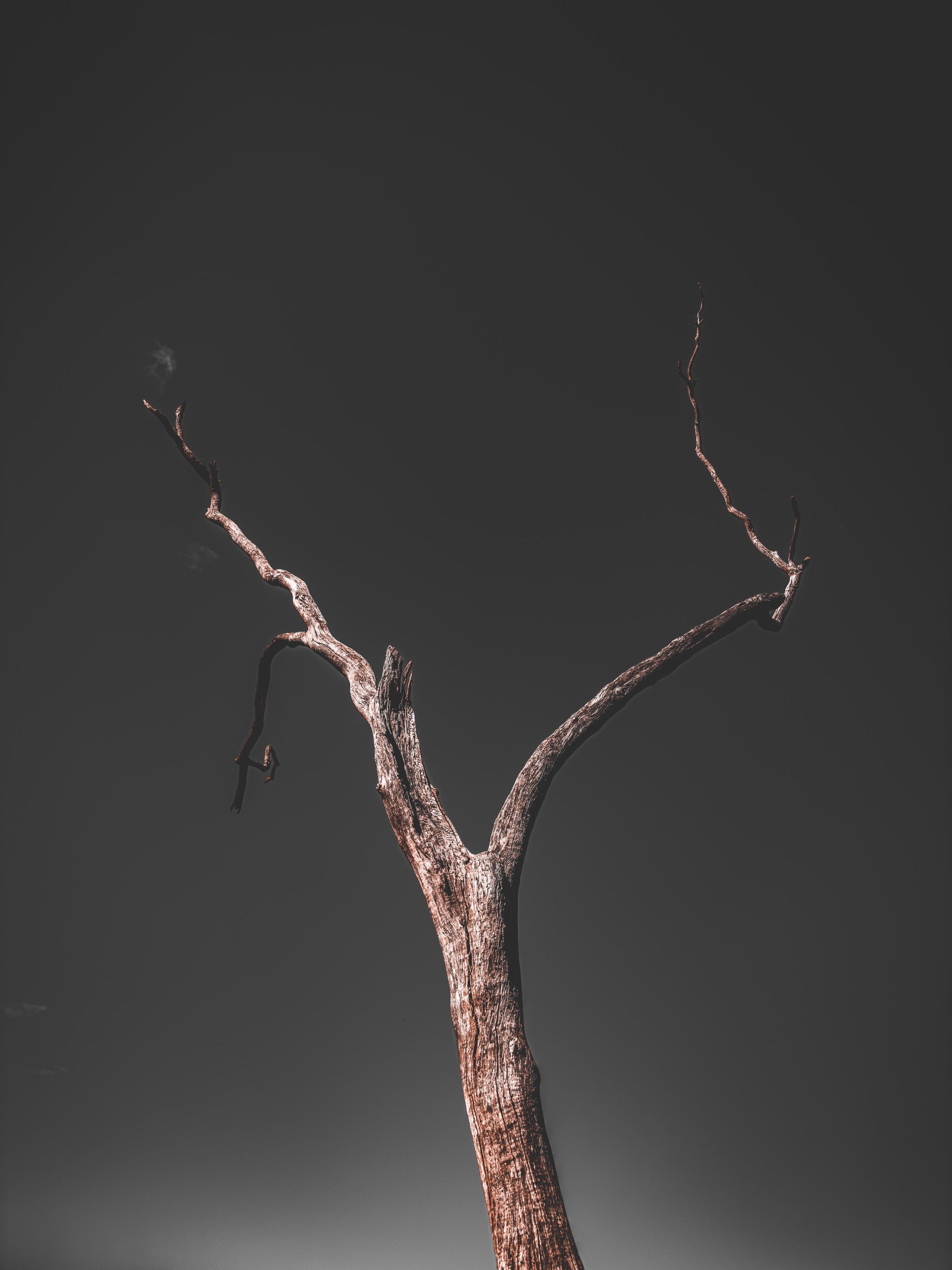 A solitary weathered branch in all its magnificent glory, set against a moody hued sky.