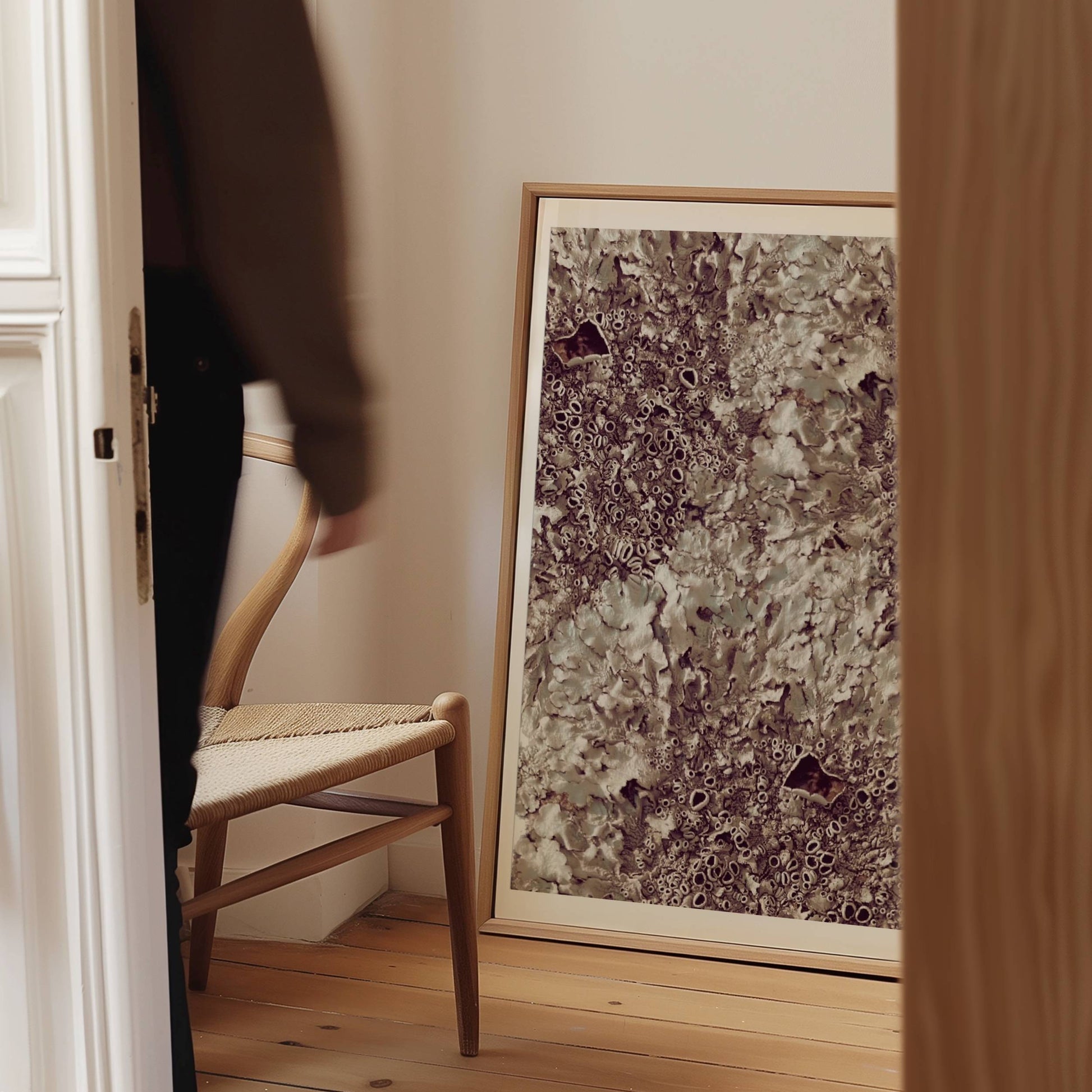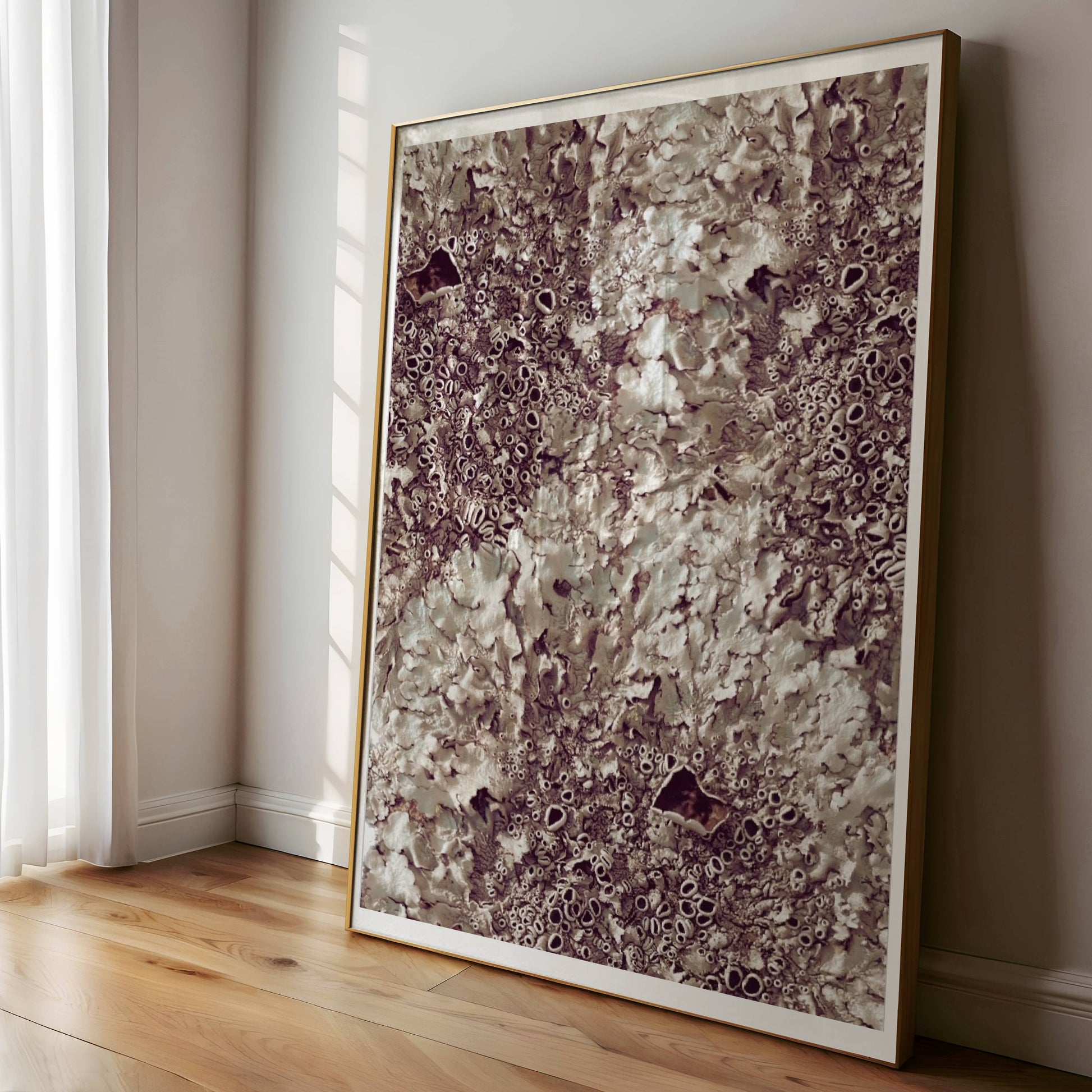 Lichen moss captured during a casual stroll at the Winton Wetlands. With its bronze, earthy tones and intricate textures, it provides interest to any room.