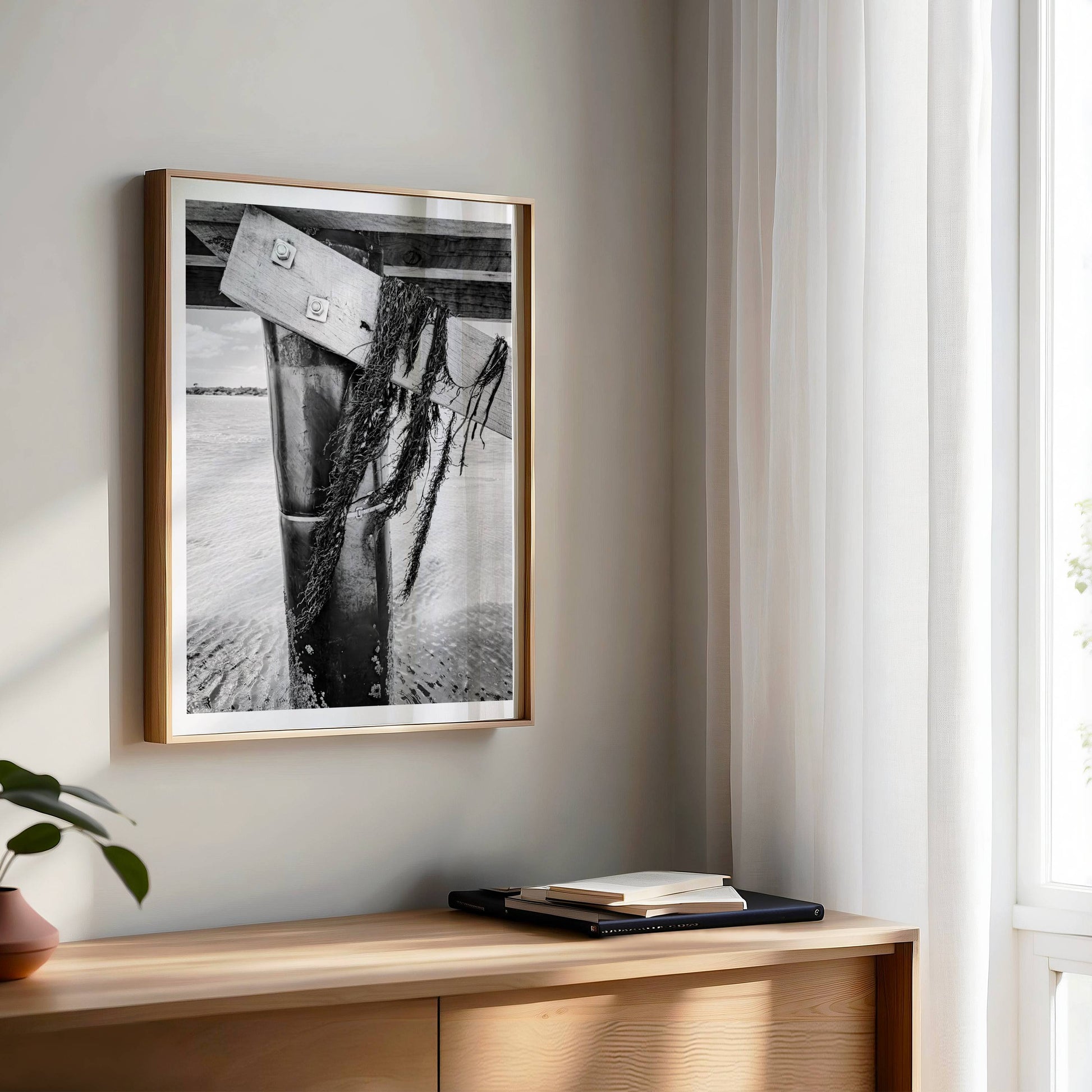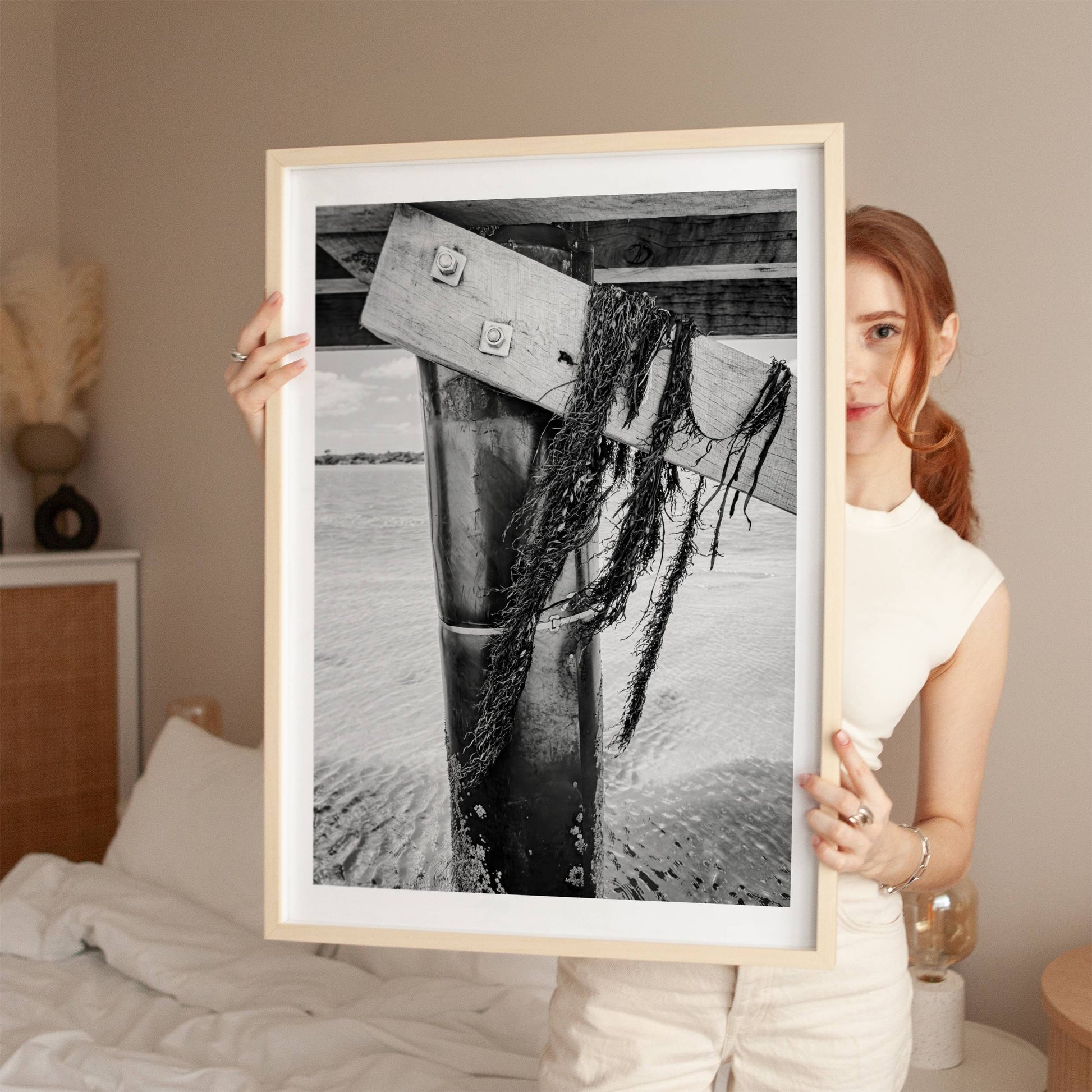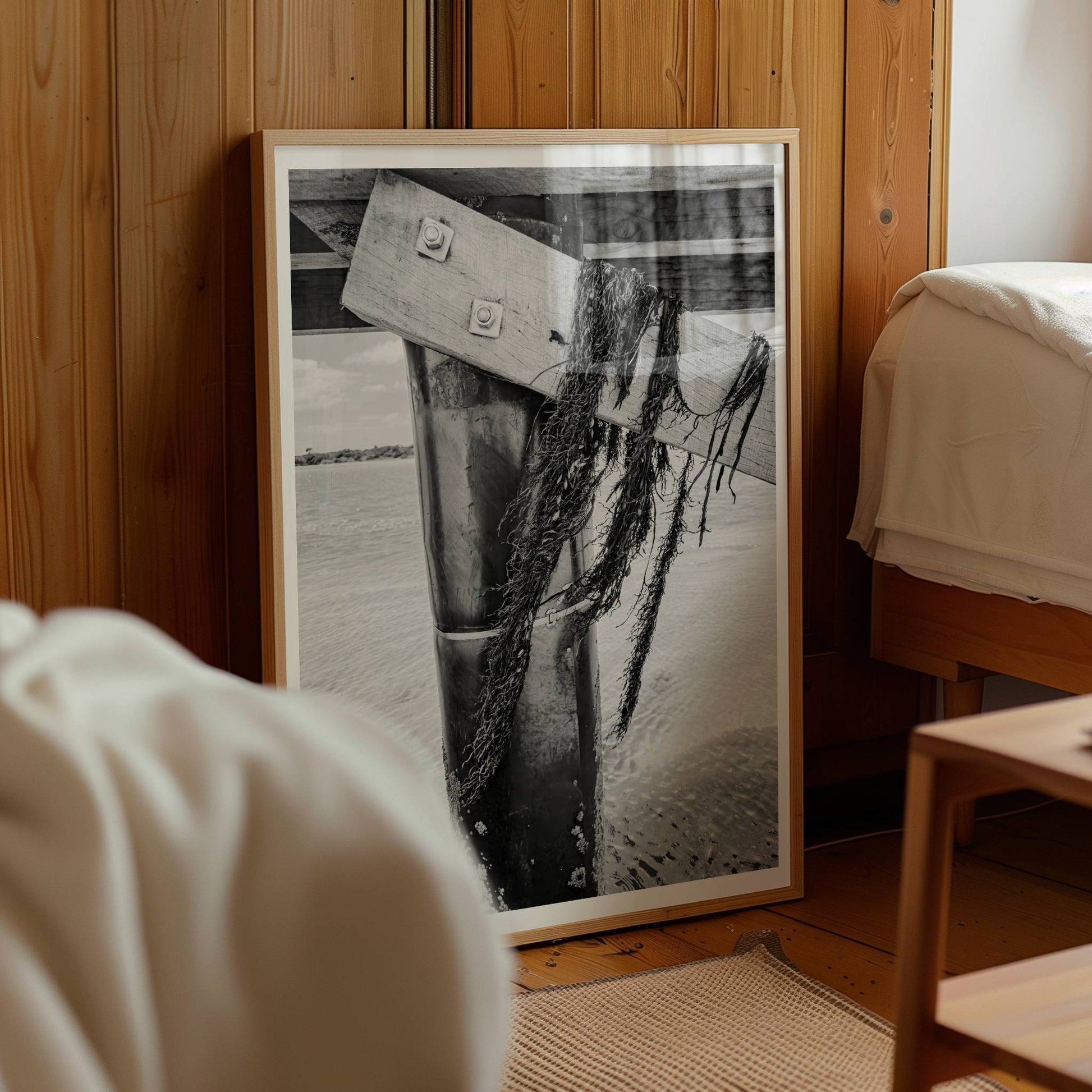 The weathered timber, the knotted seaweed and the soft rippled water below, this print is perfect for lovers of coastal textures and those drawn to the beauty in the unnoticed. Bringing a sense of stillness and salt air nostalgia to any space.