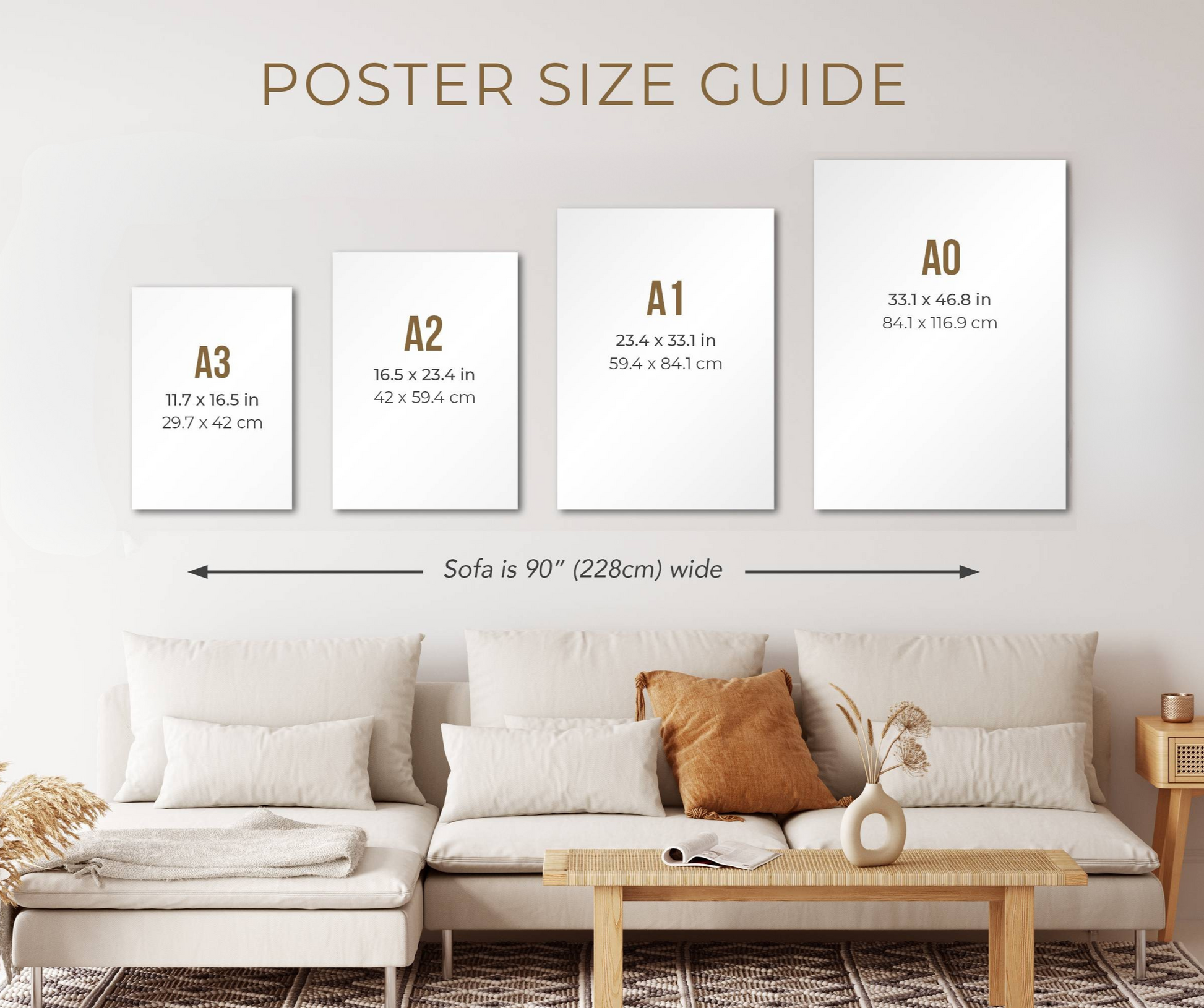 For example, if you want an A2 print behind a mat, choose the A2 print with framing border - then pop it into a larger frame. This ensures you are not stretching the paper to fit the mat border. This option also increases the overall size of the finished product.